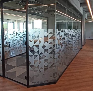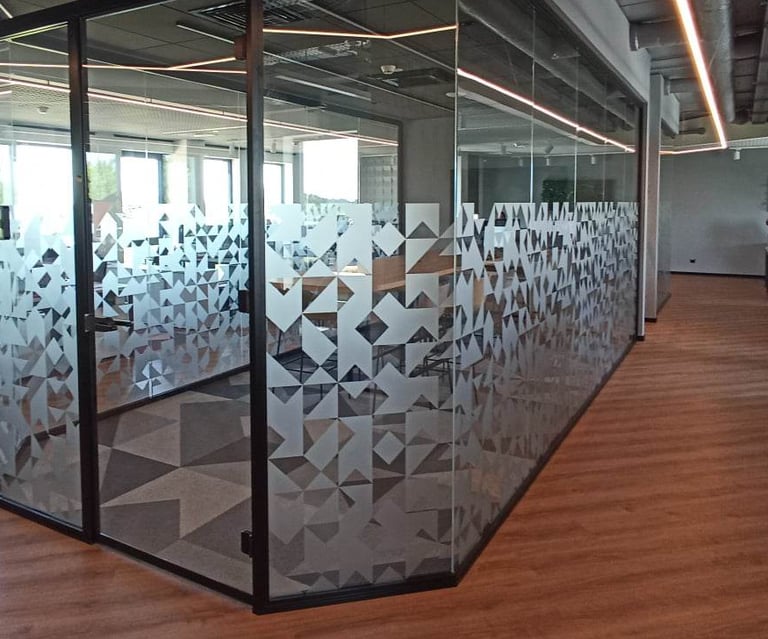 Plėvelių klijavimas ant stiklinių ofisų pertvarų yra estetiškai patrauklias ir funkcionalias darbo erdves kuriantis sprendimas. Mūsų plėvelės gali būti naudojamos tiek dekoratyviniams tikslams, tiek privatumo užtikrinimui ar vidinei reklamai.