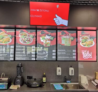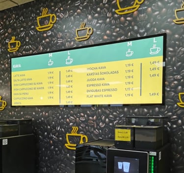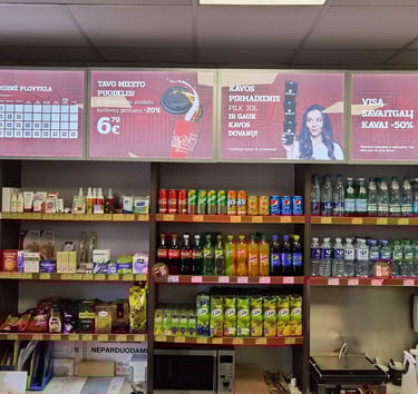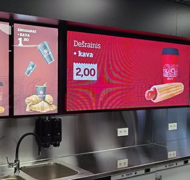 Greitai populiarėjančios išmaniosios LED ekranų sistemos leidžia vidaus patalpose rodyti reklamas ir svarbią informaciją. Ryškus, aštrus ir kontrastingas vaizdas neabejotinai atkreips lankytojų dėmesį, o centrinis nuotolinis valdymas užtikrina, kad bus rodoma būtent tai, ką ir planavote. LED ekranai tampa neatsiejami nuo modernios degalinės įvaizdžio.