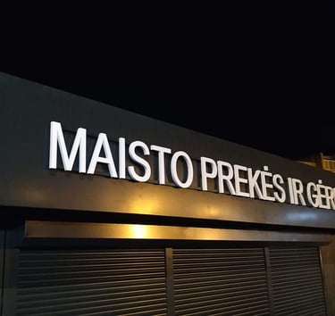 Gražiausias ir populiariausias būdas atkreipti praeivių dėmesį į Jūsų prekės ženklą - šviečiančios raidės. Gaminamos produkcijos kokybė mums visuomet yra pirmoje vietoje, todėl naudojame tokias ilgaamžiškas medžiagas kaip aliuminis.